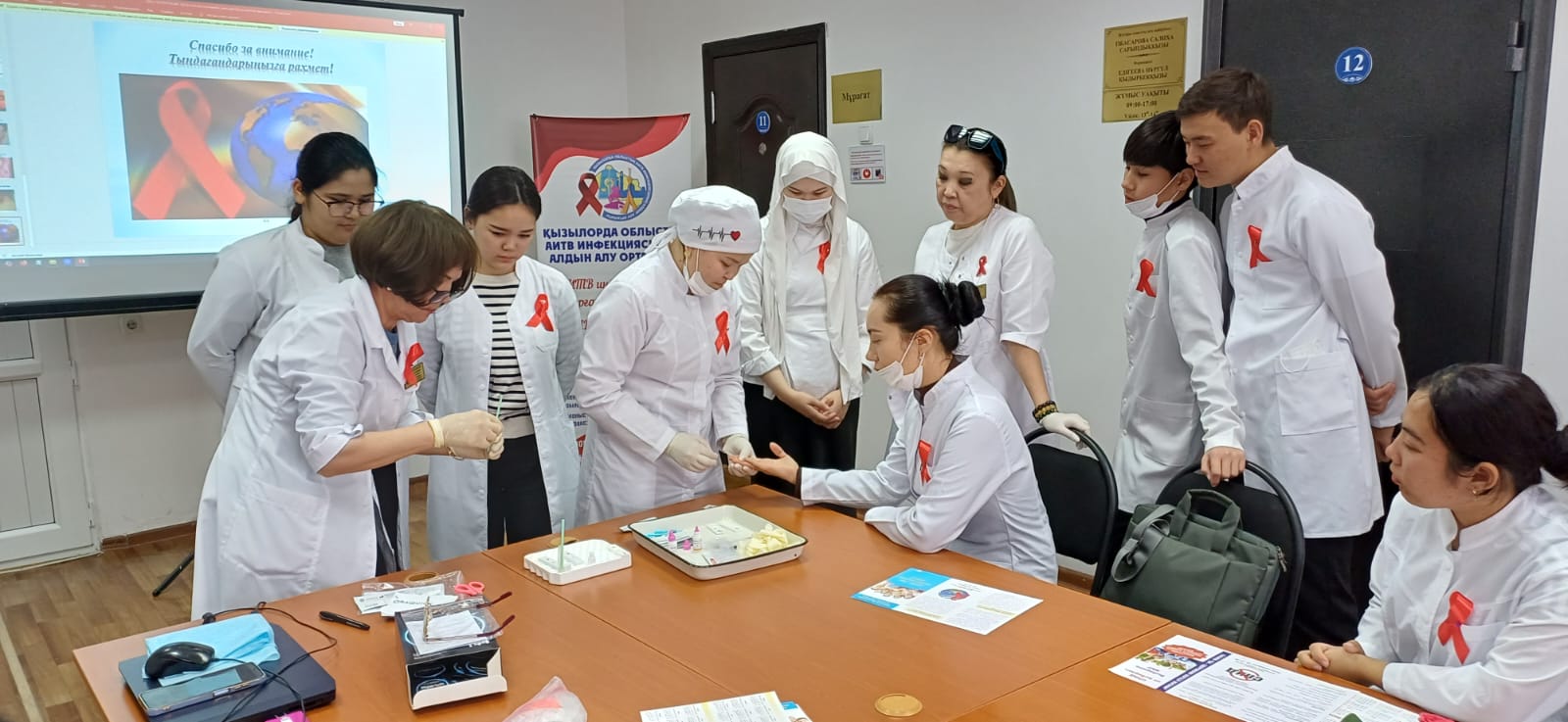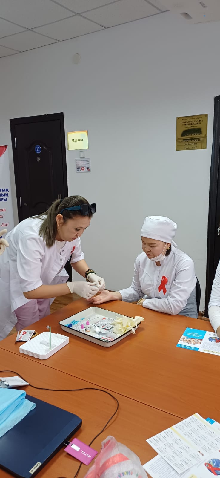 Сонымен қатар, қазіргі таңдағы АИТВ - инфекциясын ерте анықтайтын замануи жедел тестілер туралы мәліметтер беріліп, колледж студенттері арасында капиллярлық және сілекейлік тестілер қойылды.