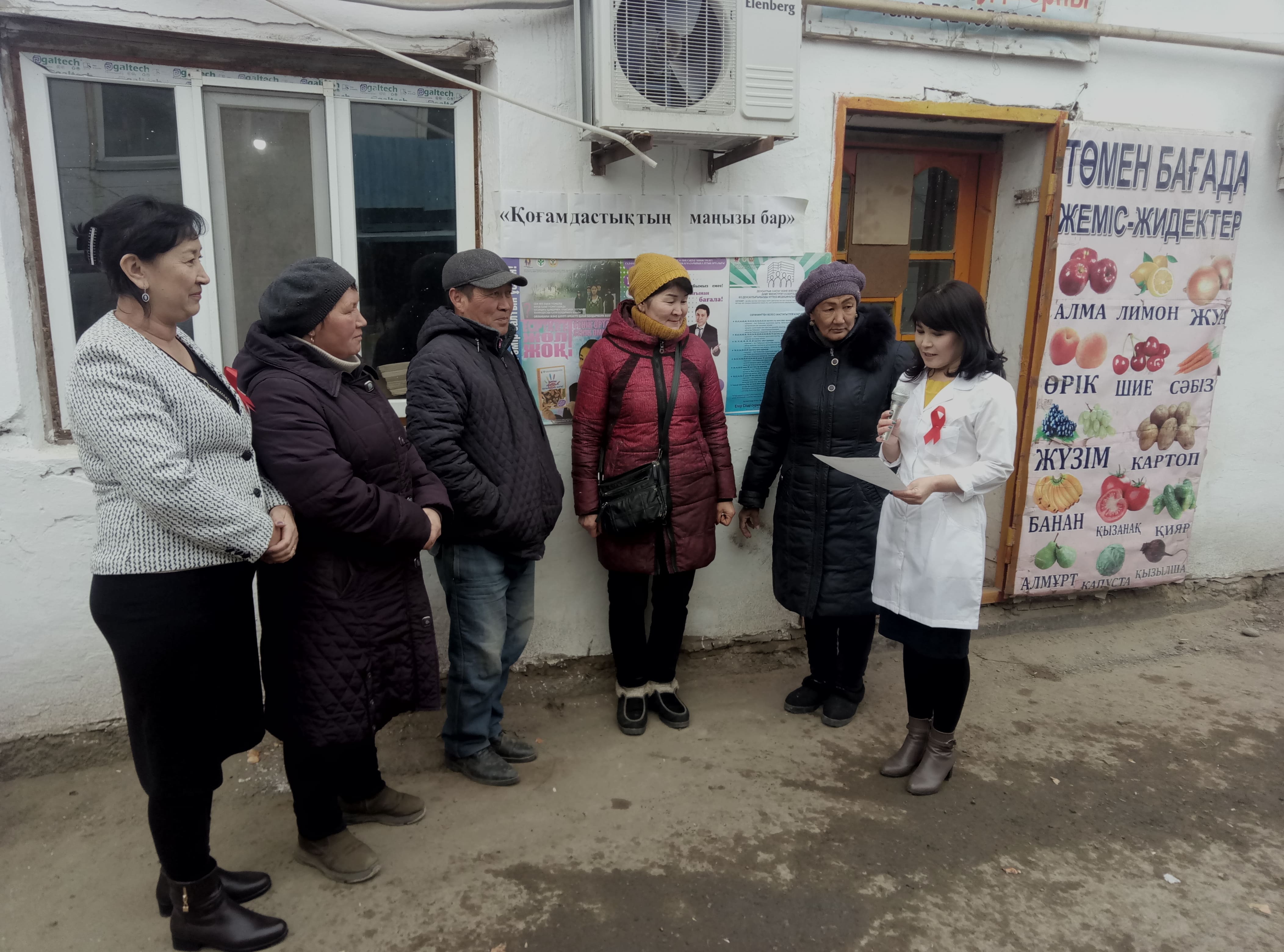 Қараша айының 18-19 жұлдызында Қазалы аудандық ЖИТС орталығының мамандарымен Бүкіләлемдік ЖИТС-пен күрес кампаниясы аясында Сулпак дүкені және Ырыс болашақ и К базарында тұрғындармен кездесу өтті. Аталған іс-шара тұрғындардың АИТВ/ЖИТС-тің алдын алу жұғу жолдары, эпидемиологиялық ахуалы туралы ақпараттанды.