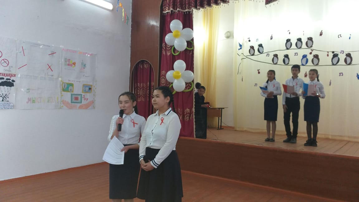 Іс-шараға мектеп директоры Сейдахметов Жандос өз пікірін білдіріп мұғалімдер мен оқушыларды белсенділікке шақырып, сәттілік тіледі. Мектеп аяжаны Әлия Аманбекқызы іс-шараның маңыздылығына тоқталып, білім саласы бойынша АИТВ/ЖИТС барысында атқарылып жатқан жұмыстарды айтып өтті.