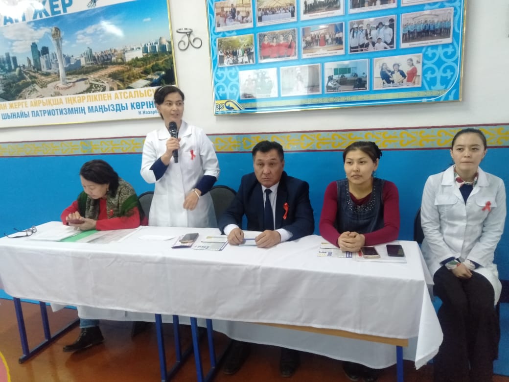 Республика, облыс көлемінде «Қауымдастықтың маңызы бар» ұранымен 2019 жылдың 5-ші қарашасы мен 5-ші желтоқсаны арасында ұйымдастырылып жатқан Дүниежүзілік ЖИТС-ке қарсы күрес күніне арналған кампаниясына тоқталып, қазіргі таңда АИТВ-инфекциясын алдын алуда, оның ішінде осы ауруды жұқтыруға бейім топтармен , жастар мен жасөспірімдермен жұмыс жасауда қауымдастықтардың, үкіметтік емес ұйымдардың маңыздылығы мен ролі туралы ақпарат берді. Сонымен қатар ақпараттық білім беру материалдары - слайд, бейнефильмдер көрсетілді, жастарға арналған буклеттер мен үнпарақтар таратылды.