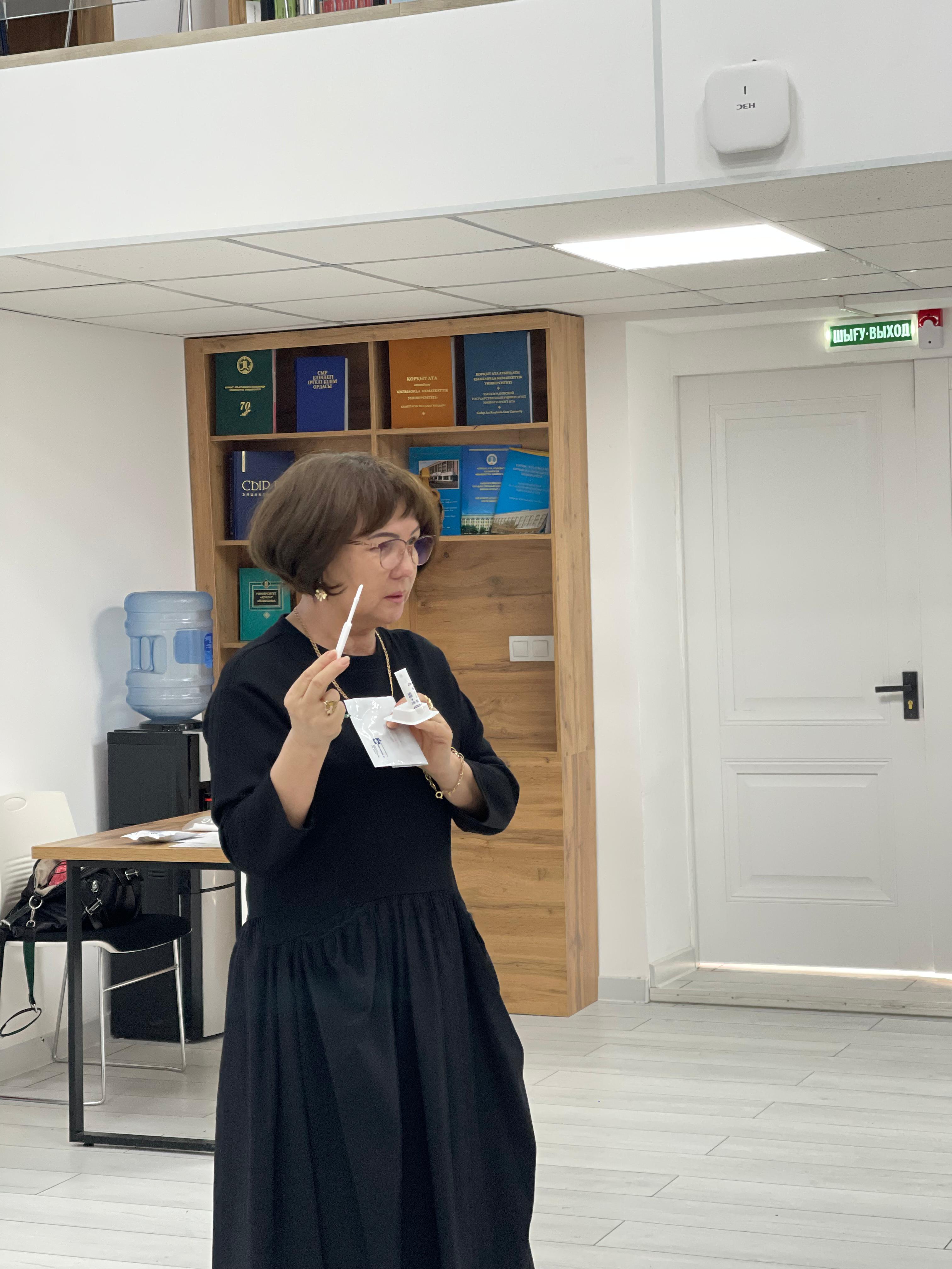 Семинар барысында студенттерге қазіргі таңдағы АИТВ-инфекциясын ерте анықтайтын замануи капиллярлық және сілекейлік жедел-тестілер туралы мәліметтер беріліп, ақпараттық- білім беру материалдары таратылды және соңында қойылған сұрақтарға жауаптар берілді.