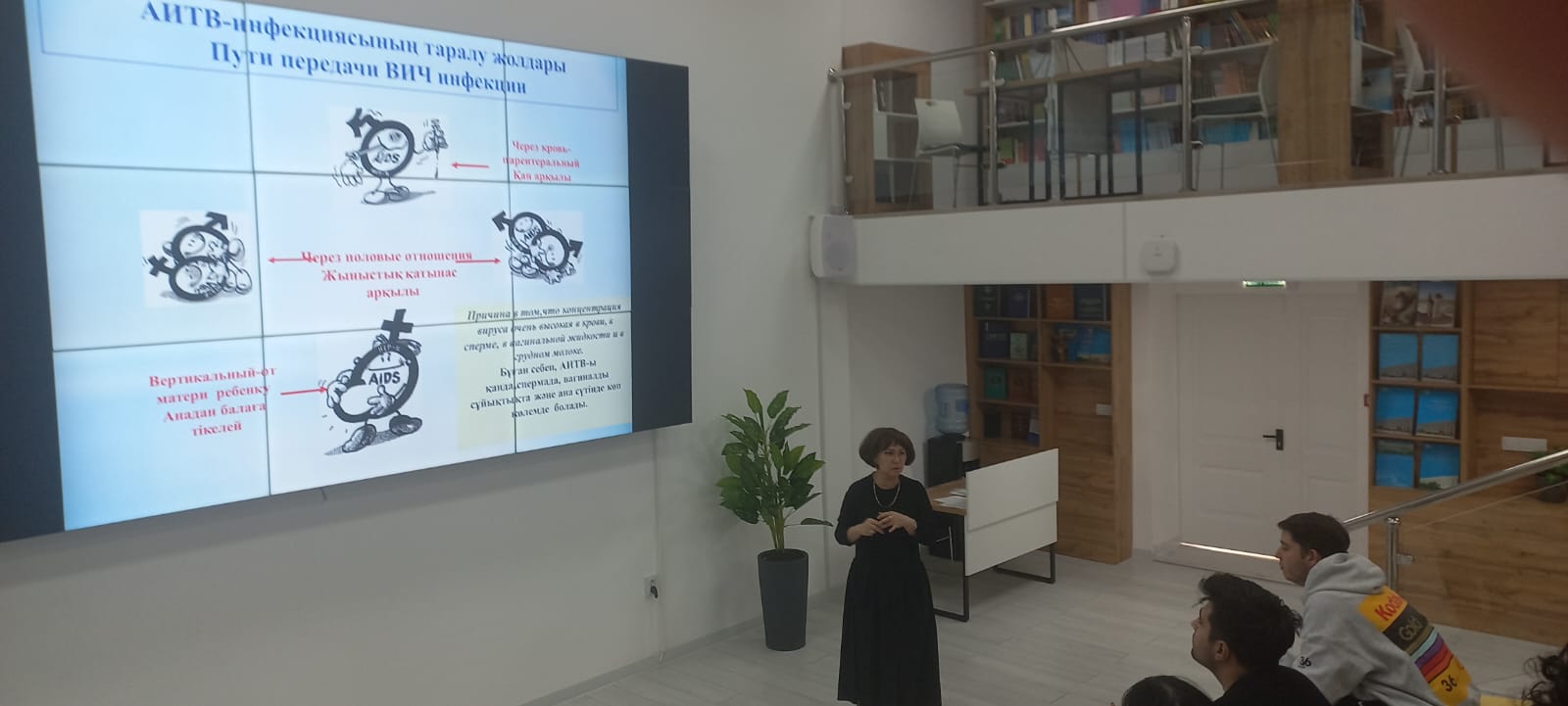Семинар аясында студенттерге АИТВ-ның дүниежүзіндегі,республикадағы, облысымыздағы эпидемиологиялық жағдайы, АИТВ/ЖЖБИ жұғу жолдары, клиникасы, емі, зертханалық диагностикасы, алдын алу шаралары, АИТВ-жұқтырғандар арасында стигма, дискриминацияны болдырмау бойынша мағұлмат берілді.
